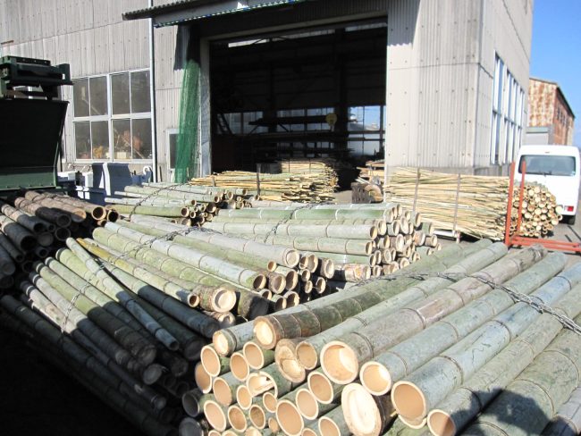 竹を10割して、乾燥、チップ形状燃料にして竹ボイラーで利用します。